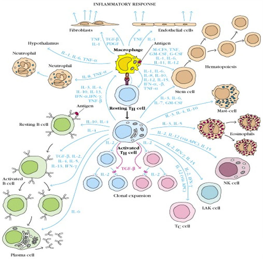 细胞因子是由免疫细胞(如单核、巨噬细胞、T细胞、B细胞、NK细胞等)和某些非免疫细胞(内皮细胞、表皮细胞、纤维母细胞等)经刺激而合成、分泌的一类具有广泛生物学活性的小分子蛋白质。具有调节固有免疫和适应性免疫、血细胞生成、细胞生长、APSC多能细胞以及损伤组织修复等多种功能。